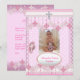 Pink White Spot Photo Frame Cross Baptism 3 Invitation