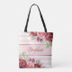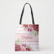 Pink White Stripe Modern Floral Personalized Tote Bag