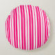 Pink White Vertical Stripes Pattern Design Round Pillow