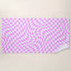 Pink & White Warped Checker Checkered Pattern Beach Towel
