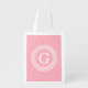 Pink Wht Greek Key Rnd Frame Initial Monogram Grocery Bag