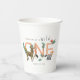 This elegant 'Wild One' 1st Birthday paper cup design features a cute woodland animal illustration, with a deer, hedgehog, badger, owl, greenery, and flowers, with pink around the edges. The design also provides space for you to add your girl's name. The perfect design for any one-year-old's first birthday!