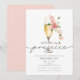 Pink Wildflower Petals and Prosecco Bridal Shower Invitation