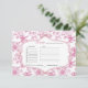 Pink Wildflower Tea bridal shower recipe request Enclosure Card