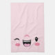 Cute and fun Pink Winking Kawaii Face Kitchen Towel. Great for kids and adults.