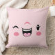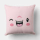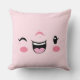 Pink Winking Kawaii Face Throw Pillow