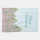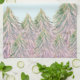 Pink Winter Forest Tree Watercolor Christmas kitchen towel. Watercolor drawing of a forest in winter and snow, winter trees with snow in pink and green colors. You can change the text.