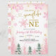 Pink Winter Snowflake First Birthday Invitation