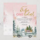 Pink Winter Truck Onederland Forest 1st Birthday Invitation