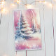 Pretty pink winter wonderland Christmas gift bag. A pink forest with pine trees covered in snow.