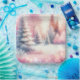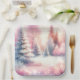Pretty pink winter wonderland Christmas party paper plate. A pink forest with pine trees covered in snow.