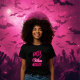 Neon pink glowing script reads “Witch Vibes Only” against a black woman's T-Shirt. A modern and bold Halloween design.
