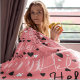 pink with a hint of white and black fleece blanket