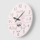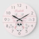 A cute owl clock for your baby girl's nursery or playroom, sprinkled with some silver stars and hearts and the words 'Dream Big, little One.' Just add her name.