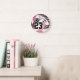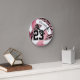 This bold zebra stripes girl's volleyball wall clock features a wild zebra stripes accent pattern on four of the volleyball's panels - the zebra stripes panels plus three other panels have a rose gold background that contrasts with the remaining white volleyball panels - customize with player name and jersey number - by katz_d_zynes