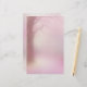 The back of this paper features a complimentary mottled pink background with ruled lines.