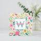 This cute monogrammed note card features a pretty floral pattern in shades of pinks, teals, greens and yellows on white. Personalize the monogram with your choice of name and initial.