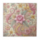 Pink Yellow Blue Boho Floral Indonesian Batik Ceramic Tile