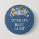 Pink, yellow and blue floral bouquet on a blue button which can be personalized with your own text. Provided text says, "World's Best aunt" but can be personalized to say anything you want. Text, font, font size, color and placement are completely customizable.