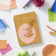 This stylish custom iPad cover features a minimalist botanical illustration in a beautiful autumn shade of mustard yellow on an abstract shapes background in blush pink. Personalize it with your name. Great gift idea!