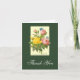 A custom Thank You card in elegant script letters with an Antique reproduction of beautiful pink and yellow rose botanical artwork by famous artist Pierre Redoute with small blue butterflies. The flowers are listed on the artwork; Persian yellow roses (rosa Lutea) and pink tea roses (rosa indica). On a hunter green background with a canvas texture pattern. Click Customize It to pick your fonts and add text.