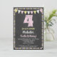 Pink Yellow Chalkboard 4th Birthday Invitation
