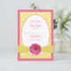 The text on this pink lemonade gerbera daisy, lemon yellow floral damask wedding reply card is fully customizable. To change the text, use the personalize options. For more extensive changes to the rsvp card, including changing the font, font color, font size, or text placement, use the customize it option. This is a pretty pink lemonade and lemon yellow wedding reply card. Great for a spring or summer wedding with a pink and yellow theme or a gerber daisy theme. With changes to the text, this could be used as a direction, reception, and/or accommodation card.