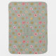Boho floral personalized baby blanket created using hand painted flowers in shades of pink, yellow and green on a gray background on the front and coordinating yellow tone on tone botanicals on the back. Original art by Leslie Larson.