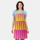 Great color and even though I ordered the kid size, it covers well enough to use during the holidays. I am not a big woman and prefer a shorter apron. I stand 5"6" and the length of the garment goes to mid-thigh. The tie straps fit well at my waist and even though there is no neck strap adjustment, the opening is plenty big enough. I am happy with the size and fit. I am sharing my apron with my 10 year old grandson, too! The color is vibrant and looks good, as shown on the website. The stitching looks strong and reinforced. Photographed is front side and back side of the apron, reinforced straps and coloring. My phone camera may not be the best at showing the details.