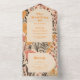 Certainly, here's a product description, H1 headings, and keywords for the "Burnt Orange Wildflowers Wedding All in One Invitation" in English.