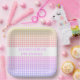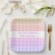 Add a fun and colorful touch to your celebration with this pastel gradient gingham square birthday plate. The soft blend of pink, yellow, coral, and lavender creates a cheerful and playful gingham pattern that’s perfect for birthday parties and special events. Featuring a customizable white band in the center, you can easily add a personal touch with names and messages like "Alessandra's Baby Shower" or "Jessica's 1st Birthday". These plates make a stylish and memorable addition to your party decor, ensuring your event stands out.