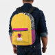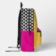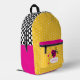 Cute pink ladybug on a yellow, white and black polka dot flowers and hearts backpack. Great for kids or teens. Customize with the name of your choice currently reads Jessica. Exclusively designed by Sarah Trett for www.mylittleeden.com