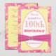 Pink Yellow White Floral 100th Birthday Invitation