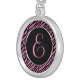 Pink Zebra Print Fancy Letter E Silver Plated Necklace