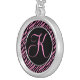 Pink Zebra Print Fancy Letter K Silver Plated Necklace