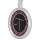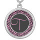 Pink Zebra Print Fancy Letter T Silver Plated Necklace