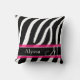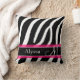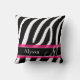 Show off your personal style in a fun way with this black and white zebra print with pink accent personalized pillow.
