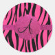 Pink zebra stripes monogram classic round sticker