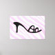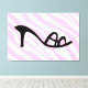 Pink Zebra Stripes With Black Shoe Modern Canvas Art. These pink Zebra stripes with a black shoe are shown on a 60 by 40 inch canvas with 2 inch sides. This Zebra print may be customized to a smaller size.