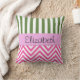 Pink Zigzag, Chevron, Green Stripes, Your Name Throw Pillow
