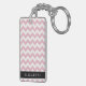 Pink Zigzag, Pink Chevron, Wave Pattern, Your Name Keychain