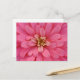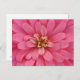 This postcard features a photograph of a beautiful pink zinnia flower.