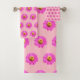 Pink Zinnia Flower Seamless Pattern on Bath Towel Set