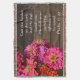 Inspirational Christian Bible verse, Cast your burden on the Lord and he will sustain you, from psalm 55:22 with Bible scripture verse, a lovely women's Christian gift. Pretty pink zinnia flowers with wood crate background. Beautiful florals flower scene with green leaves Inspirational message about overcoming life's challenges. Photo © Angela Sullivan