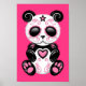 This unique design features an adorable sitting baby panda bear decorated with pink swirls and drops. A large heart is in the middle of the bear's chest with a small five point star appearing at the top of the forehead. These simple patterns are inspired by the Day of the Dead sugar skulls as are the flower pedals surrounding each dark eye. The stitched mouth also gives the panda a cute zombie appearance. This cute symmetrical design is a unique representation of this beautiful creature.
