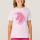 This strange design features an undead, zombie unicorn with a garland of skulls in a cute pink color.