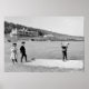 Vintage photo of children golfing at Mount Pleasant golf links, Bretton Woods, in the White Mountains of New Hampshire. The young boy is driving from the ninth tee of the course.