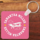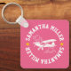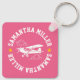 This bold, fun keychain features a charming white line art of a Piper Cub airplane and clouds image personalized with your name and 2 gold stars on a lush pink background.