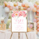 This baby shower welcome sign features a blush pink peony spring floral design. The script heading is an image that cannot be edited. All of the other text is fully editable. For more advanced customization of this design, simply select the "Customize It" button above.
