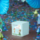 Use this cute cube box to enclose the treats or favors you will give to your guests in your kid's birthday. Customize the text with your own information or click in customize further to edit the template. The image shows a kid sword playing with a pirate scarecrow. You can find invitations and other coordinated products in my store. Illustrated and designed by Patricia Alvarez.